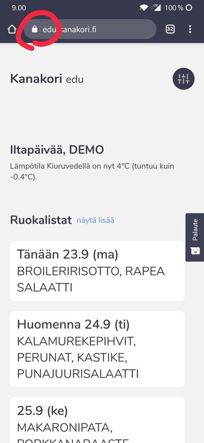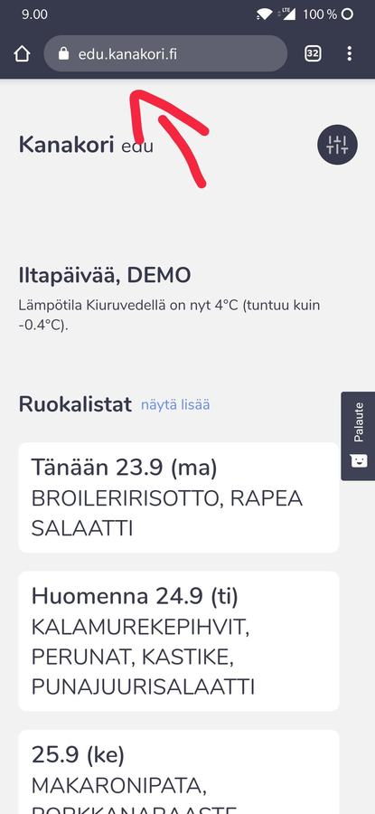 - Mikäli olet asentanut Kanakorin aloitusnäytellösi, avaa Chrome-selain ja siirry osoitteeseen edu.kanakori.fi